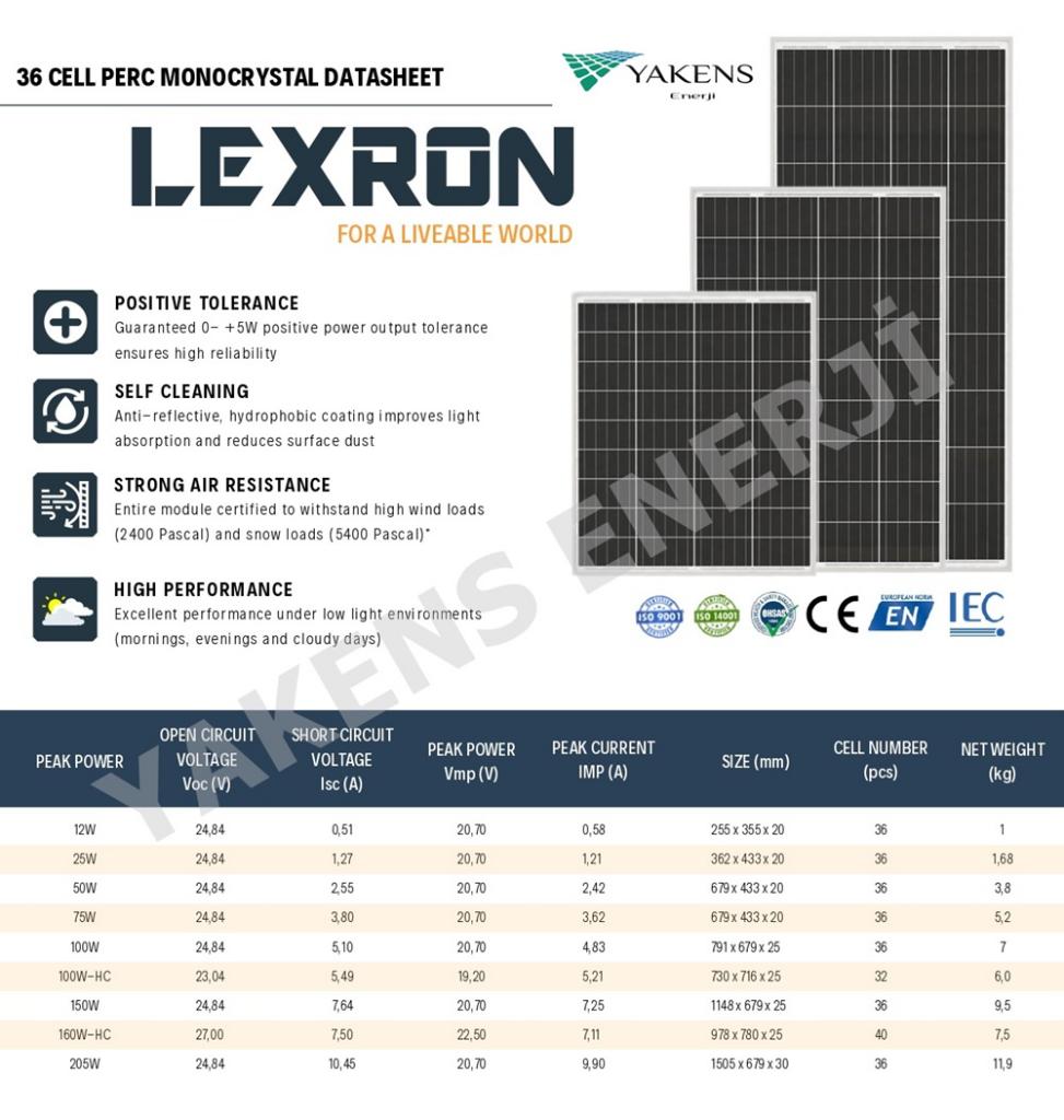 Lexron Half Cut 160 Watt Monokristal Solar Panel Teknik Özellikleri