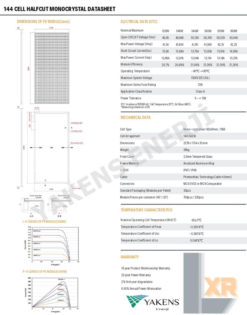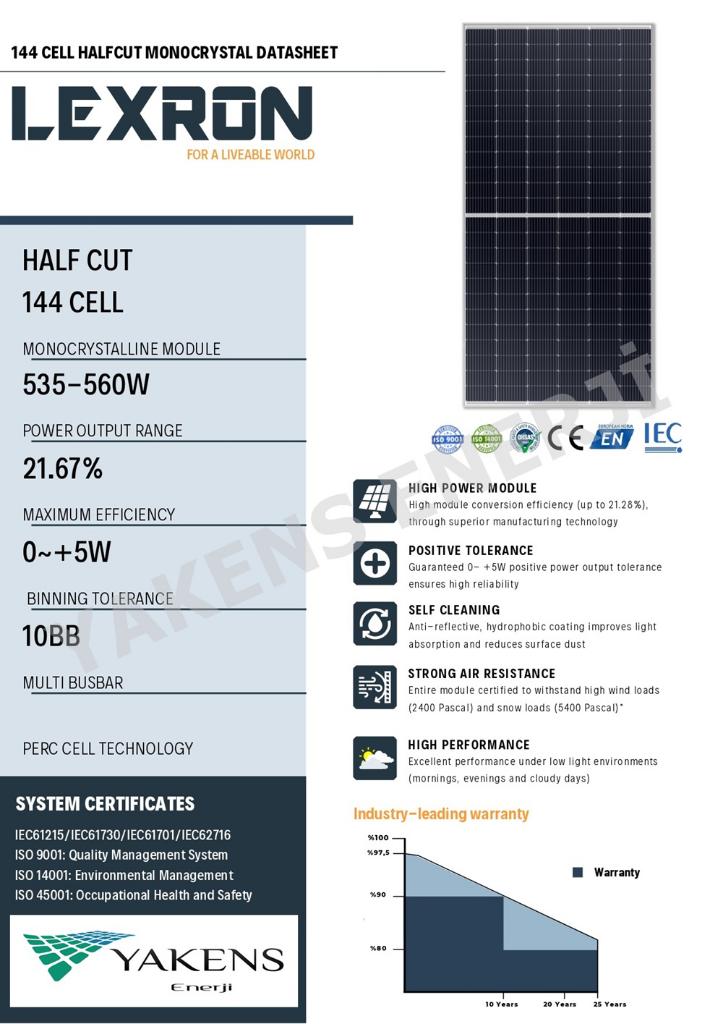 Lexron Half Cut 560 Watt Monokristal Solar Panel Teknik Özellikleri