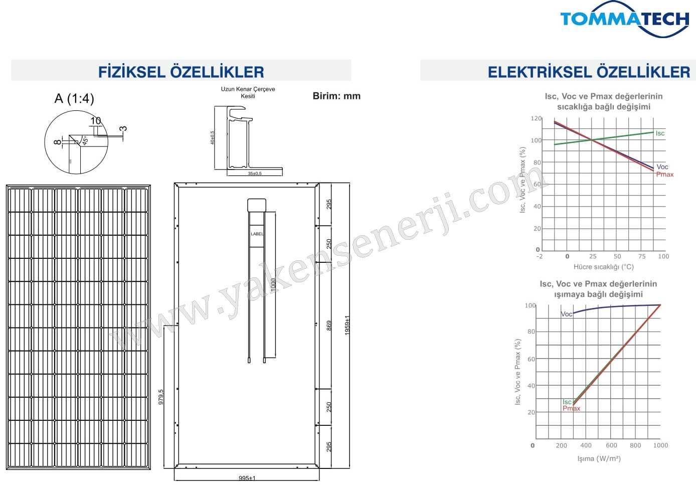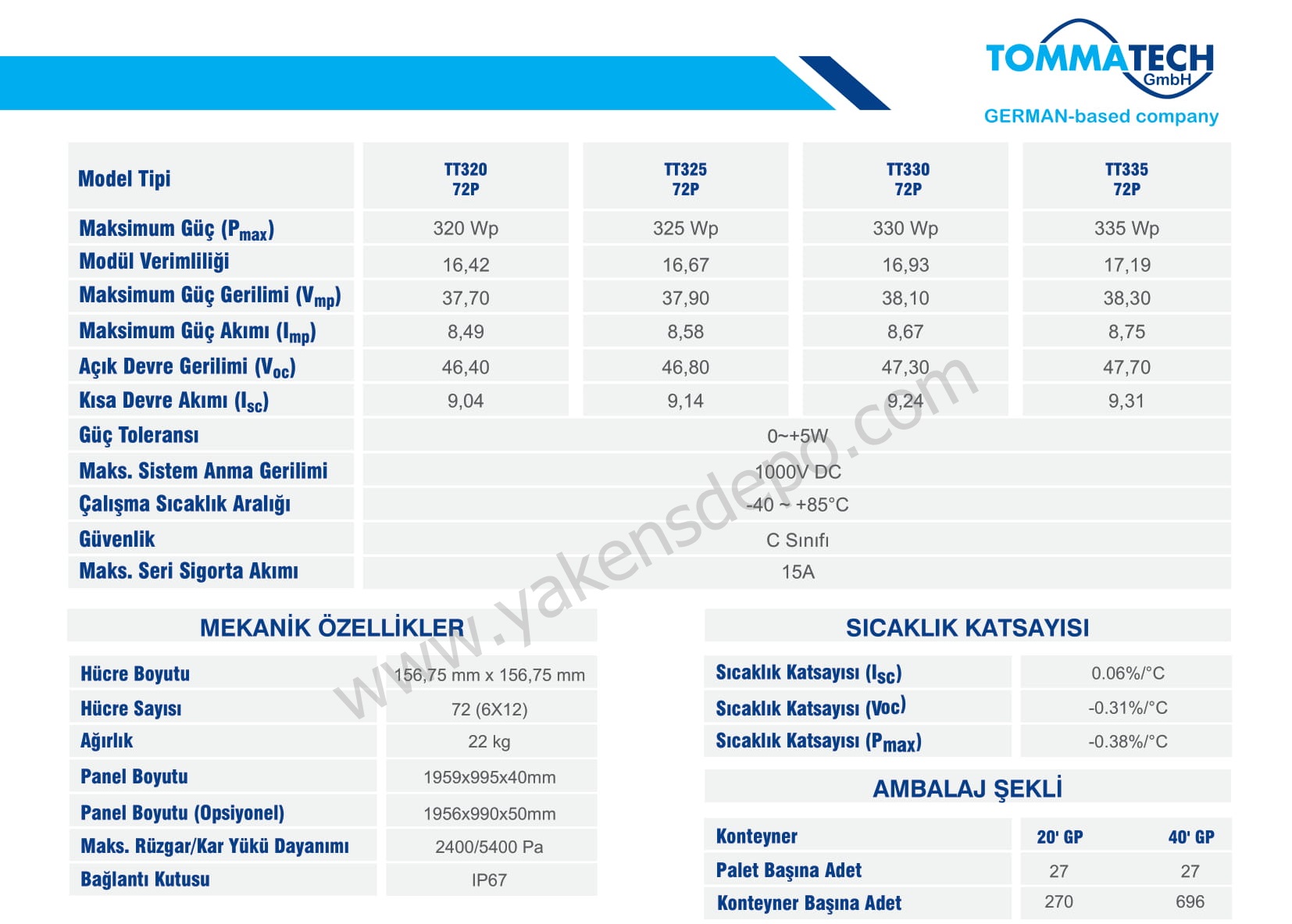 320 WATT TOMMATECH GÜNEŞ PANELİ TT320-72P TEKNİK ÖZELLİKLER